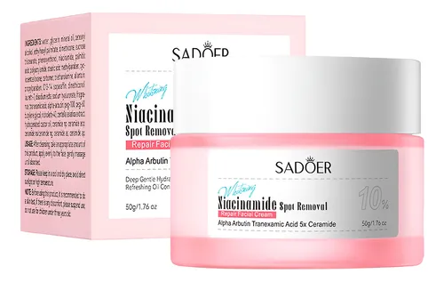 Crema Blanqueadora con Niacinamida de Sadoer es uno de los productos más vendidos de la marca para tratar la hiperpigmentación. Se promociona como una solución de "corrección de tono" tanto para el rostro como para zonas del cuerpo que tienden a oscurecerse.
